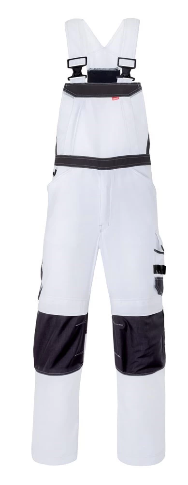 verdekte ritssluiting, 2 ruime ingezette zijzakken, ruime borstzak met rits aan de zijkant, 2 ruime achterzakken waarvan 1 met klep, loshangende duimstokzak met extra toolzakjes, ruime loshangende dijbeenzak met klep en extra opbergmogelijkheden door de geïntegreerde GSM-zak en de extra toolzakjes, makkelijk toegankelijke Cordura® kniezakken met opening aan bovenzijde afsluitbaar met klep en klittenband, voorgevormde broekspijpen voor zeer goede pasvorm, Cordura® versterkingen en drievoudig gestikte naden op kwetsbare plekken voor een extra lange levensduur, verstelbare hamerlus d.m.v. drukknoop, zeer sterk ademend stretch doek (polyamide/Lycra) in de knieholte voor optimaal draagcomfort, verstelbare schouderbanden met elastiek, extra inzet bij kruis ter voorkoming van uitscheuring, 1 D-ring voor badgehouder, reflecterende piping