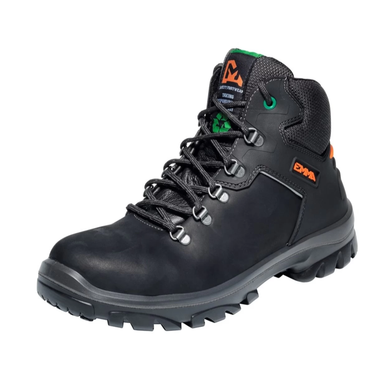 Dit is een volledig circulaire veiligheidsschoen: alle grondstoffen worden hergebruikt, bijvoorbeeld in meubels, bouwmaterialen én in nieuwe veiligheidsschoenen. Amazone is een van de eerste zes circulaire modellen van EMMA. In de loop van 2019 zijn al onze veiligheidsschoenen volledig circulair.