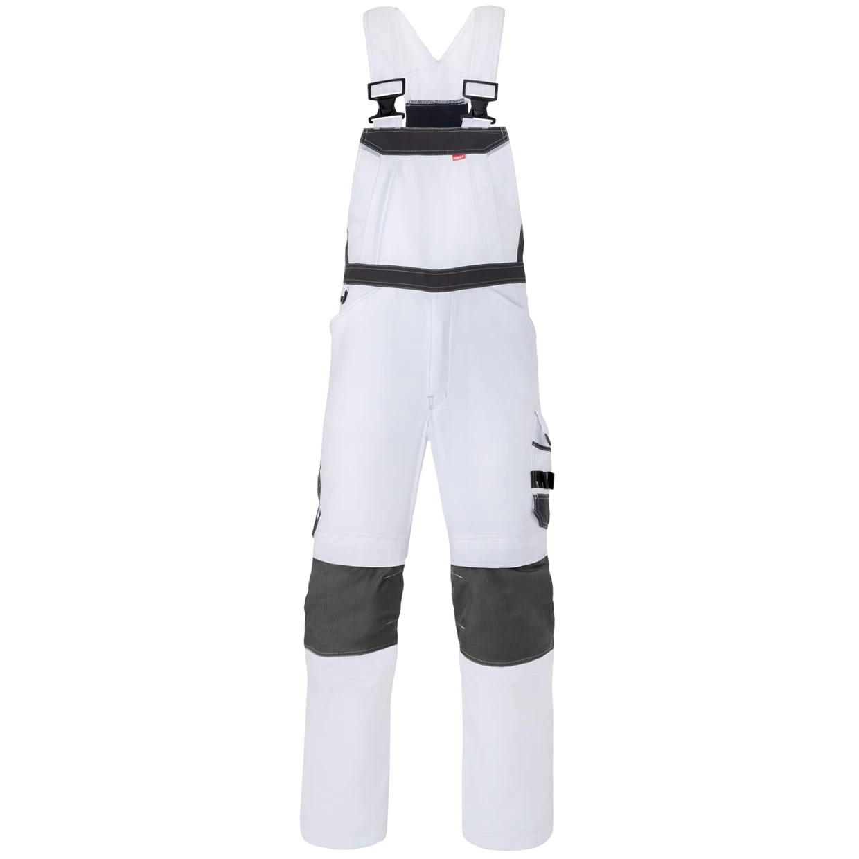 Verdekte ritssluiting, 2 ruime ingezette zijzakken, ruime borstzak met rits aan de zijkant, 2 ruime achterzakken waarvan 1 met klep, loshangende duimstokzak met extra toolzakjes, ruime loshangende dijbeenzak met klep en extra opbergmogelijkheden door de geïntegreerde GSM-zak en de extra toolzakjes. Makkelijk toegankelijke Cordura® kniezakken met opening aan bovenzijde afsluitbaar met klep en klittenband, voorgevormde broekspijpen voor zeer goede pasvorm, Cordura® versterkingen en drievoudig gestikte naden op kwetsbare plekken voor een extra lange levensduur. Verstelbare hamerlus d.m.v. drukknoop, zeer sterk ademend stretch doek (polyamide/Lycra) in de knieholte voor optimaal draagcomfort, verstelbare schouderbanden met elastiek, extra inzet bij kruis ter voorkoming van uitscheuring, 1 D-ring voor badgehouder, reflecterende piping.