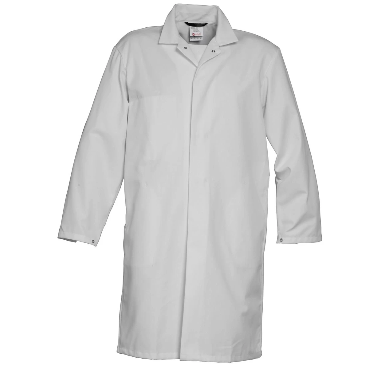 Lange jas/Stofjas van HaVeP Food & Catering, met verdekte drukknoopsluiting, 2 rechte zijzakken, binnenzak, tailleband op rug, rugplooien, split, mouwen met steldrukkers.
