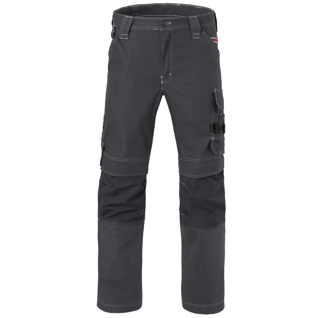 Verdekte ritssluiting, 2 ruime ingezette zijzakken waarvan 1 extra zakje met rits, 2 ruime achterzakken waarvan 1 met klep, loshangende duimstokzak met extra toolzakjes, ruime loshangende dijbeenzak met klep en extra opbergmogelijkheden door de geïntegreerde GSM-zak en de extra toolzakjes. Makkelijk toegankelijke Cordura® kniezakken met opening aan bovenzijde afsluitbaar met klep en klittenband, voorgevormde broekspijpen voor zeer goede pasvorm, Cordura® versterkingen en drievoudig gestikte naden op kwetsbare plekken voor een extra lange levensduur. Brede riemlussen, verstelbare hamerlus d.m.v. drukknoop, zeer sterk ademend stretch doek (polyamide/Lycra) in de knieholte voor optimaal draagcomfort, extra inzet bij kruis ter voorkoming van uitscheuring, 1 D-ring voor badgehouder, reflecterende piping.