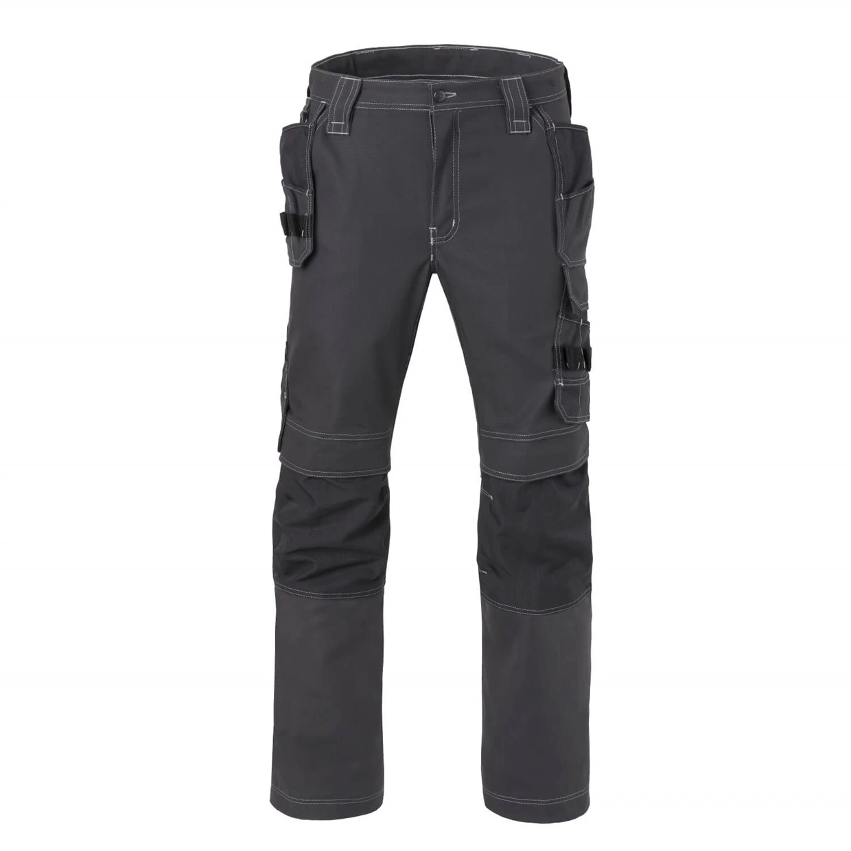 verdekte ritssluiting, 2 ruime ingezette zijzakken waarvan 1 extra zakje met rits, 2 loshangende voorzakken met extra opbergmogelijkheden, 2 ruime achterzakken waarvan 1 met klep, loshangende duimstokzak met extra toolzakjes, ruime loshangende dijbeenzak met klep en extra opbergmogelijkheden door de geïntegreerde GSM-zak en de extra toolzakjes, makkelijk toegankelijke Cordura® kniezakken met opening aan bovenzijde afsluitbaar met klep en klittenband, voorgevormde broekspijpen voor zeer goede pasvorm, Cordura® versterkingen en drievoudig gestikte naden op kwetsbare plekken voor een extra lange levensduur, brede riemlussen, verstelbare hamerlus d.m.v. drukknoop, zeer sterk ademend stretch doek (polyamide/Lycra) in de knieholte voor optimaal draagcomfort, extra inzet bij kruis ter voorkoming van uitscheuring, 1 D-ring voor badgehouder, reflecterende piping