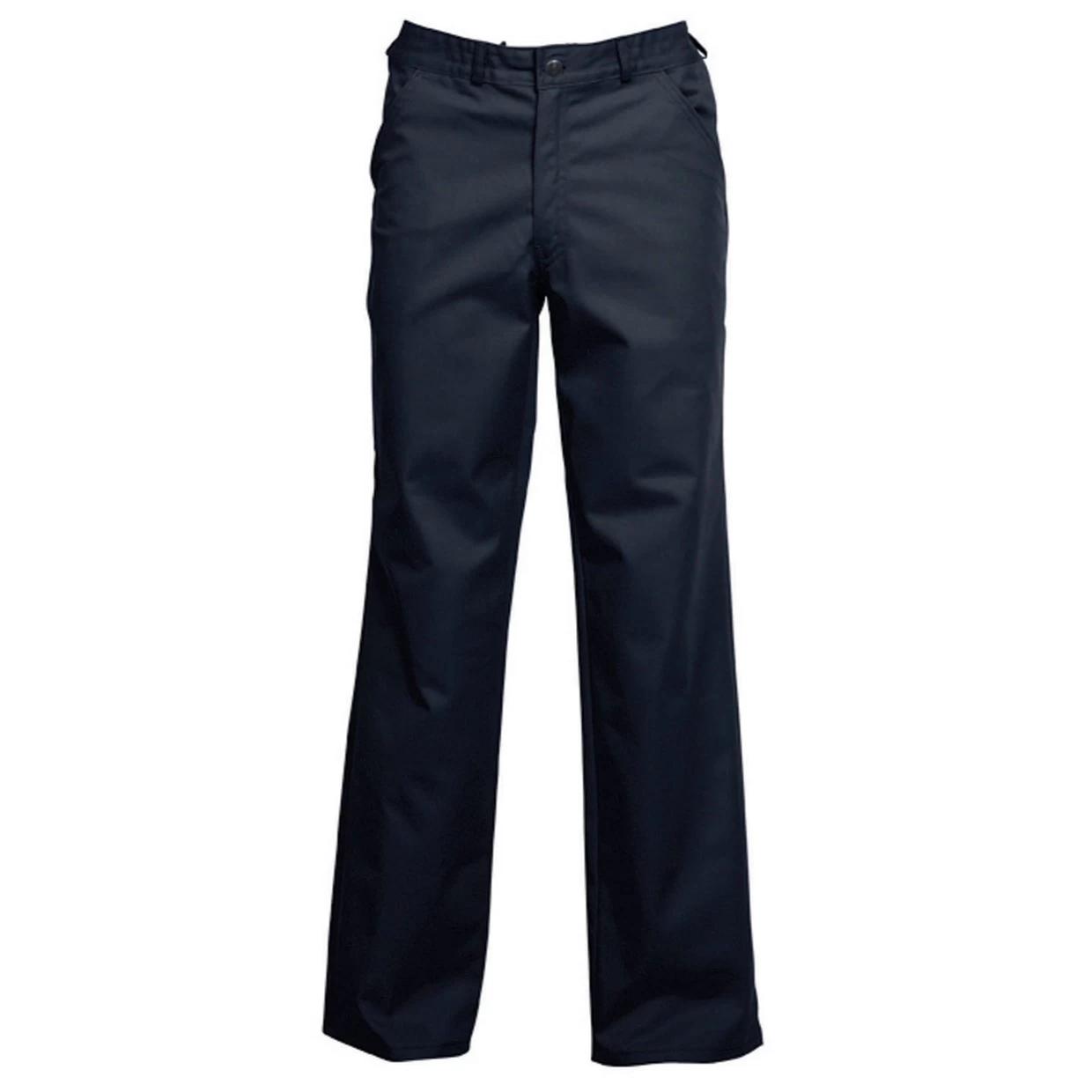 Werkbroek van HaVeP Basic, met verdekte ritssluiting, 2 ingezette zijzakken, 2 achterzakken waarvan 1 met knoop, duimstokzak, elastiek in rug.
