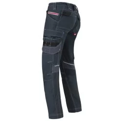 Werkbroek van HaVeP Basic, met verdekte ritssluiting, 2 ingezette zijzakken, 2 achterzakken waarvan 1 met knoop, duimstokzak, dijbeenzak met klep, kniezakken, elastiek in rug.