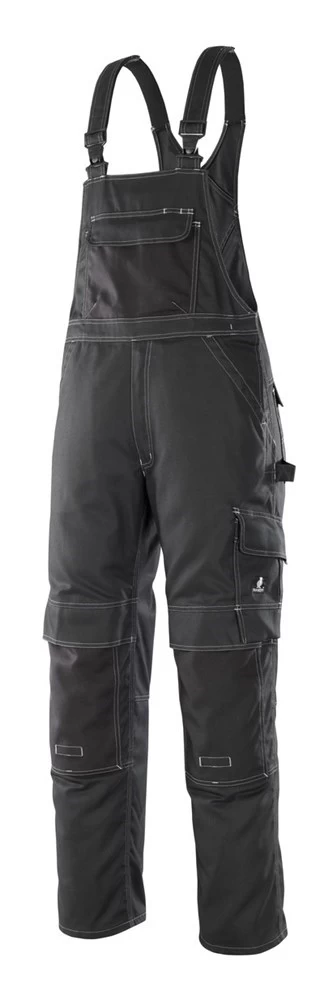 Drievoudig gestikte naden aan de broekspijpen en in het kruis. Verstelbare schouderbanden met korte sterke elastieken en kunststof gespen. Borstzak van cordura® met penhouder en klep met verborgen drukknopen. Binnenzak met klittenbandsluiting. Verstelbare tailleband. Ergonomisch gevormde broekspijpen. Voorzakken. Gulp met rits. Achterzakken met versterking, klep en klittenbandsluiting. Verstelbare hamerlus. Dijbeenzak met versterking en klep met klittenbandsluiting. Telefoonzak op de dijbeen met klep en verstelbare klittenbandsluiting. Duimstokzak van CORDURA®. Pennenzakje van CORDURA®. Verstelbare kniezakken van CORDURA® met klep en opening aan de bovenzijde. Contraststiksels. Reflectie-effecten.