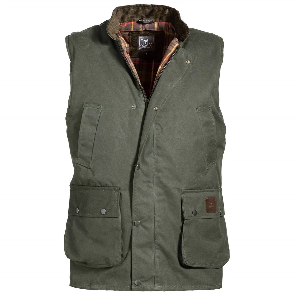 Deze stoere gewaxte bodywarmer van Mongo is winddicht en waterafstotend. Op deze bodywarmer zit een leren MGO logo op de linkerzak en de bodywarmer is voorzien van een binnenzak met rits. De kraag is 5 cm breed en heeft afgeronde hoeken.