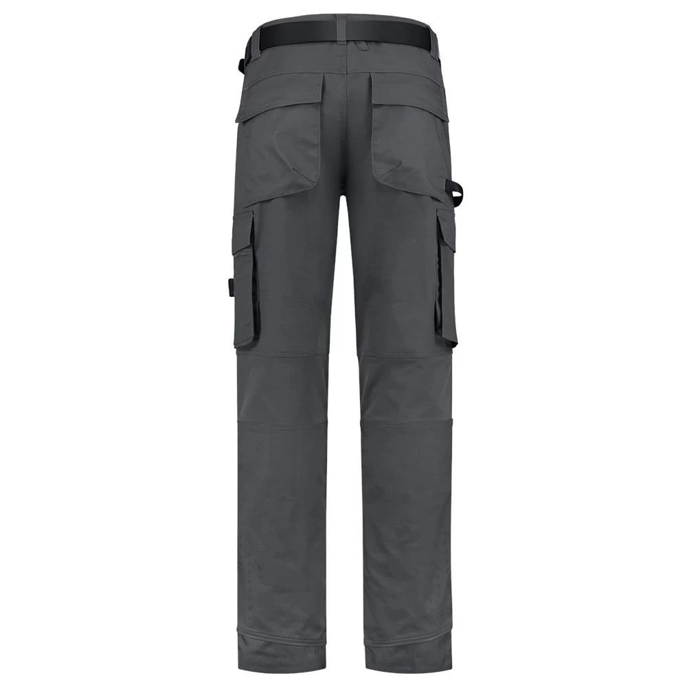 De worker onder de werkbroeken: De werkbroek Twill Cordura Stretch is een luxe worker welke je zelfs na een lange werkdag niet uit wilt trekken. Met soepel mechanische stretch delen bij de kuiten en in het kruis is de bewegingsvrijheid in deze broek optimaal. De taille is naar wens aan te passen middels een elastische band in de taille. Bij Tricorp kleden wij elke professional: lang, kort, dik en dun: de worker is daarom verkrijgbaar in 3 lengtematen. Tevens is de zoom 6 cm verlengbaar. De worker biedt met diverse zakken genoeg opbergruimte voor het gereedschap dat je bij je draagt tijdens het uitvoeren van het werk. Je sluit de broek met een verdekte knoop, hierdoor is de broek industrieel wasbaar op 85 graden. Reflectie piping zorgt voor extra zichtbaarheid bij schemer. Match de broek met de bijpassende verstelbare swingpockets, te bevestigen aan de onzichtbare klittenband sluiting. Kniekussens kunnen op meerdere hoogtes in de broek worden bevestigd.